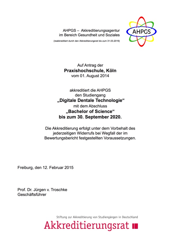 Die technische Entwicklung im Bereich der dentalen Technologie führt zu einem stark erweiterten Qualifizierungsbedarf. Der neue Studiengang spezialisiert die Mitarbeiter in den Bereichen CAD/CAM, F&E, Produktion und Qualitätsmanagement und bildet somit optimal die Fachkräfte von morgen aus.